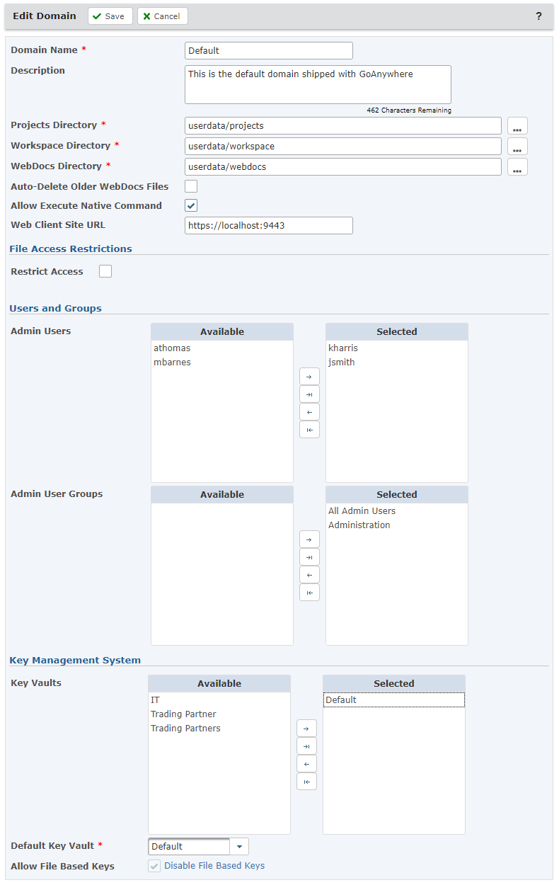 Note: The Web Client Site URL indicates the address of the Web Client and is used in emails that are sent from GoAnywhere. This URL should be accessible from both internal and external network locations.